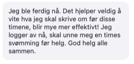 – det gir så god start på helga å vite at nyhetsbrevet er i boks!